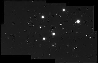 Um dos mais magníficos aglomerados abertos de todo o céu. As Plêiades, assim nomeadas pela mitologia grega, são sete irmãs, que são as sete estrêlas principais visíveis a olho nú. Clique na imagem para ver o mosaico.