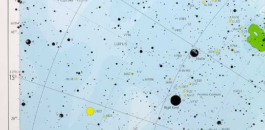 descrições dos objetos. A região mostrada é a de Beta Centauri.