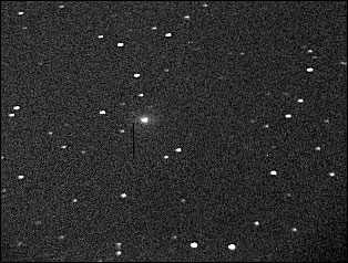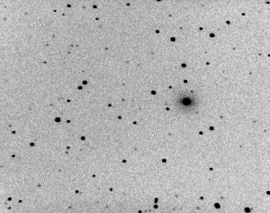 Log de 26/27 Abril 2003 Observadas 158 galáxias entre RA 10:38 e RA 12:52. Um suspeito na imagem abaixo, indicado por uma linha preta (pequena estrela a esquerda e acima da galáxia. É provavelmente um artefato, apesar de ter aparecido em duas imagens consecutivas, mas será checado na noite seguinte.