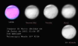 Composição tricromática de Marte em sua oposição de 2001