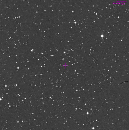 Aqui temos a imagem de comparação obtida com telescópio Oschkin Schmidt de 1.5m do Monte Palomar |