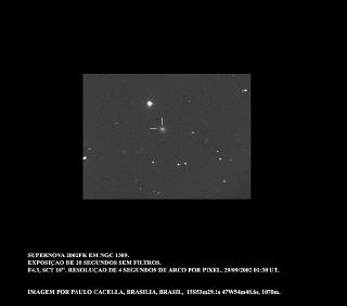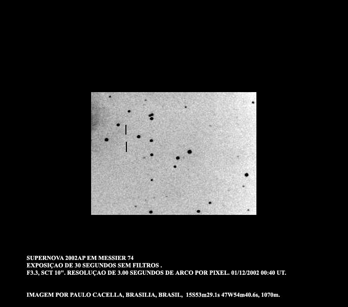 Novas e SupernovasNo fim da vida de uma estrela diversas coisas podem acontecer, dependendo da sua quantidade de massa. Algumas sofrem perda de matéria através de pequenas explosões, que chamamos de Novas. Outras sofrem destruição completa, num evento de ordem galáctica que pode ser visto a distâncias enormes. São as Supernovas. As supernovas são eventos muito raros. Ocorrem em média a cada 500 anos em cada galáxia, segundo estimativas atuais. A última em nossa galáxia foi vista no século XVII por Kepler. Em 1987 apareceu uma supernova na Grande Nuvem de Magalhães que ficou muito famosa. Foi visível a olho nú por meses.
