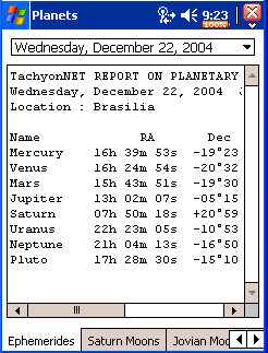 We have ephemerides data from all planets and main satellites of Jupiter and Saturn, including animations and